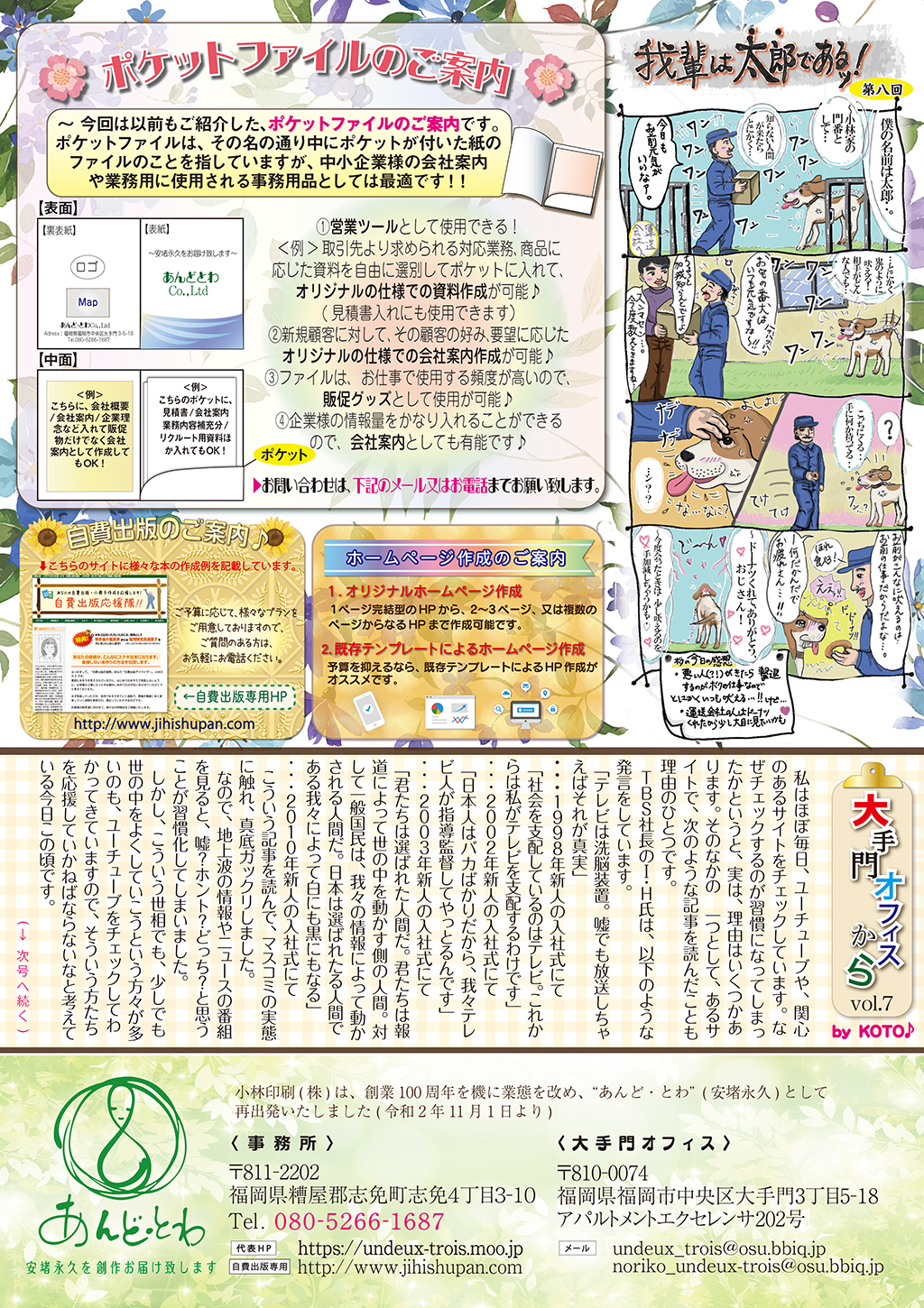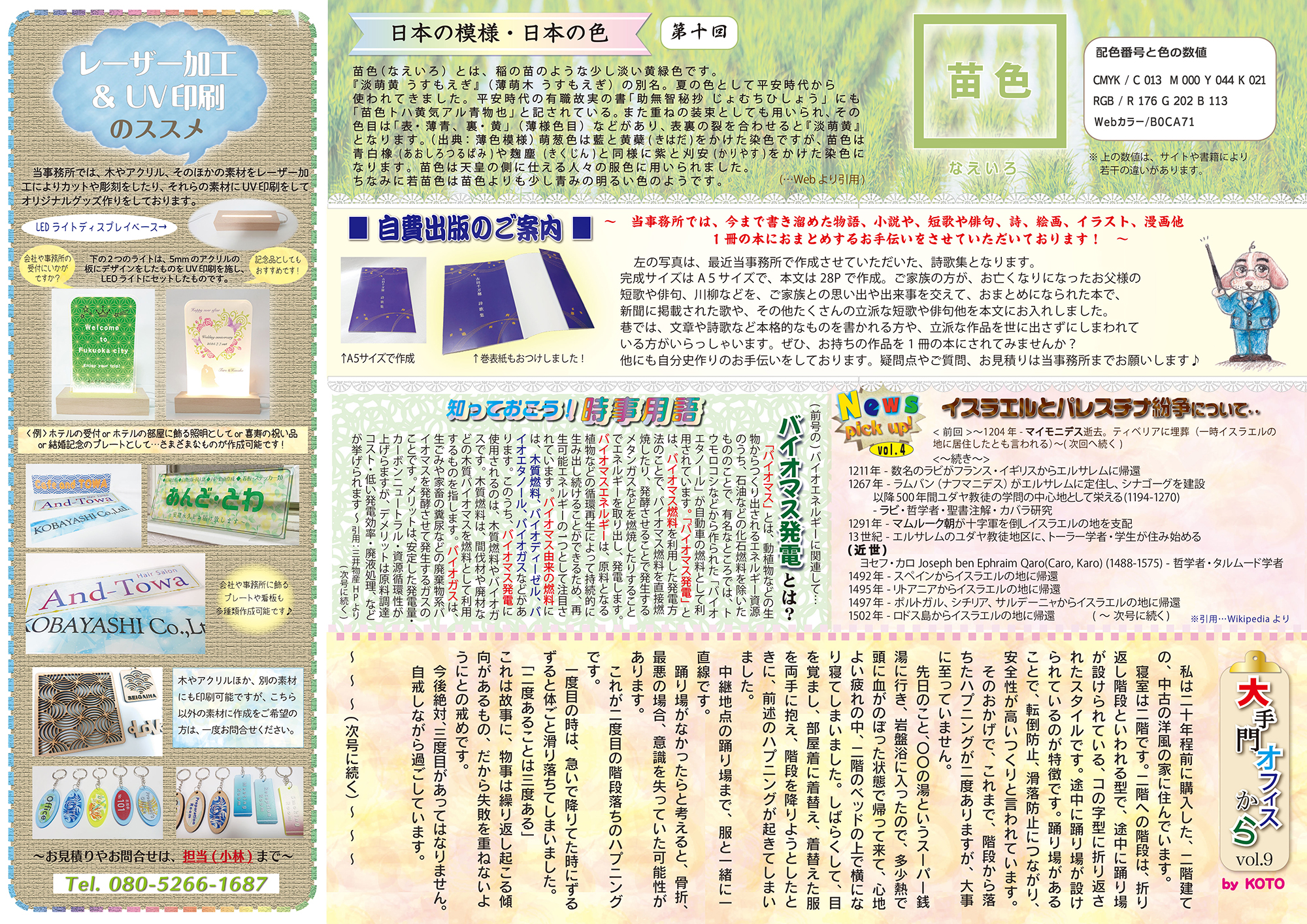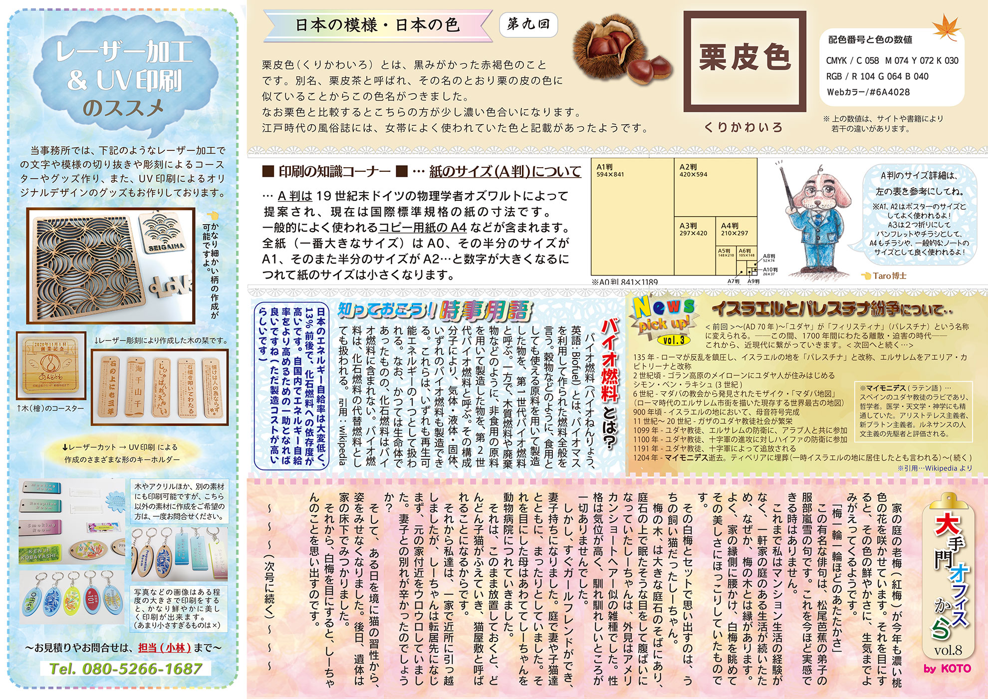 ※9号より、仕上がりサイズを変えました!展開でA3サイズで作成しており、420mmの辺を4つに分けて折り目を入れ(観音折)、 仕上がりが約105×210mmの縦長サイズで仕上げ、配布させていただいております♪