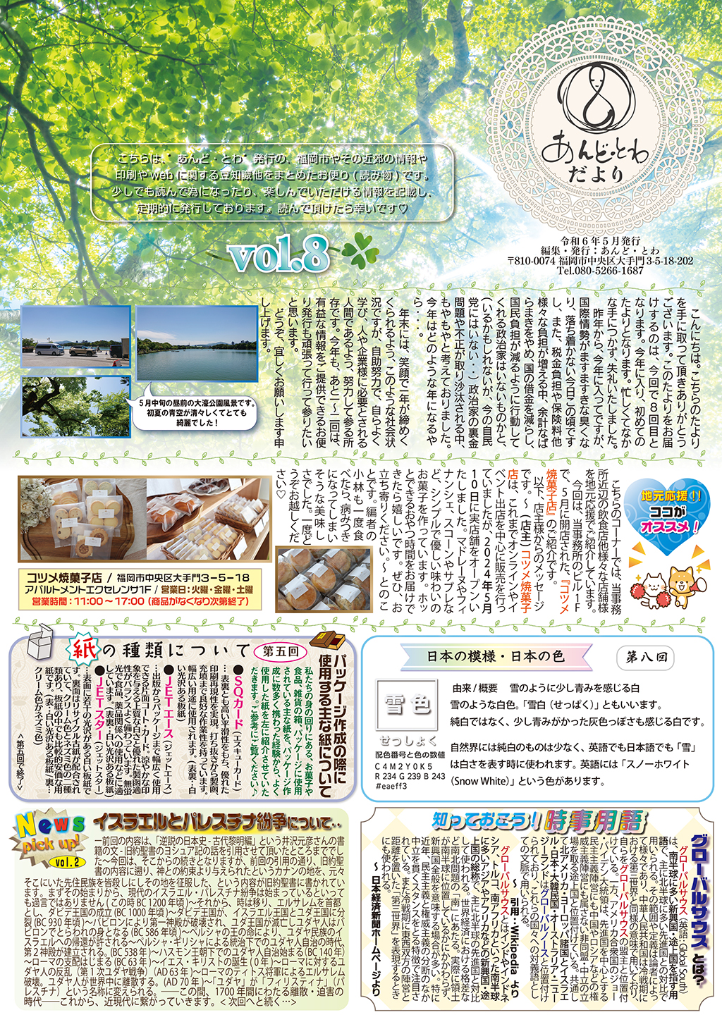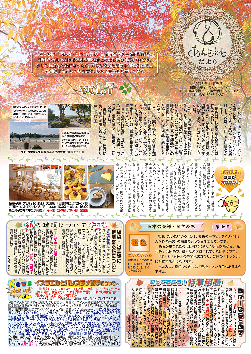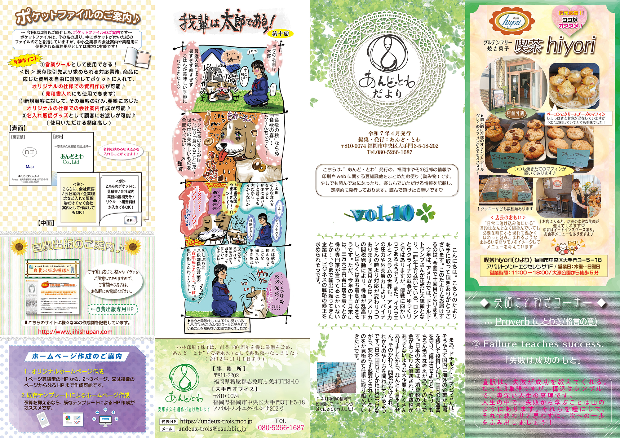 ※9号より、仕上がりサイズを変えました!展開でA3サイズで作成しており、420mmの辺を4つに分けて折り目を入れ(観音折)、 仕上がりが約105×210mmの縦長サイズで仕上げ、配布させていただいております♪